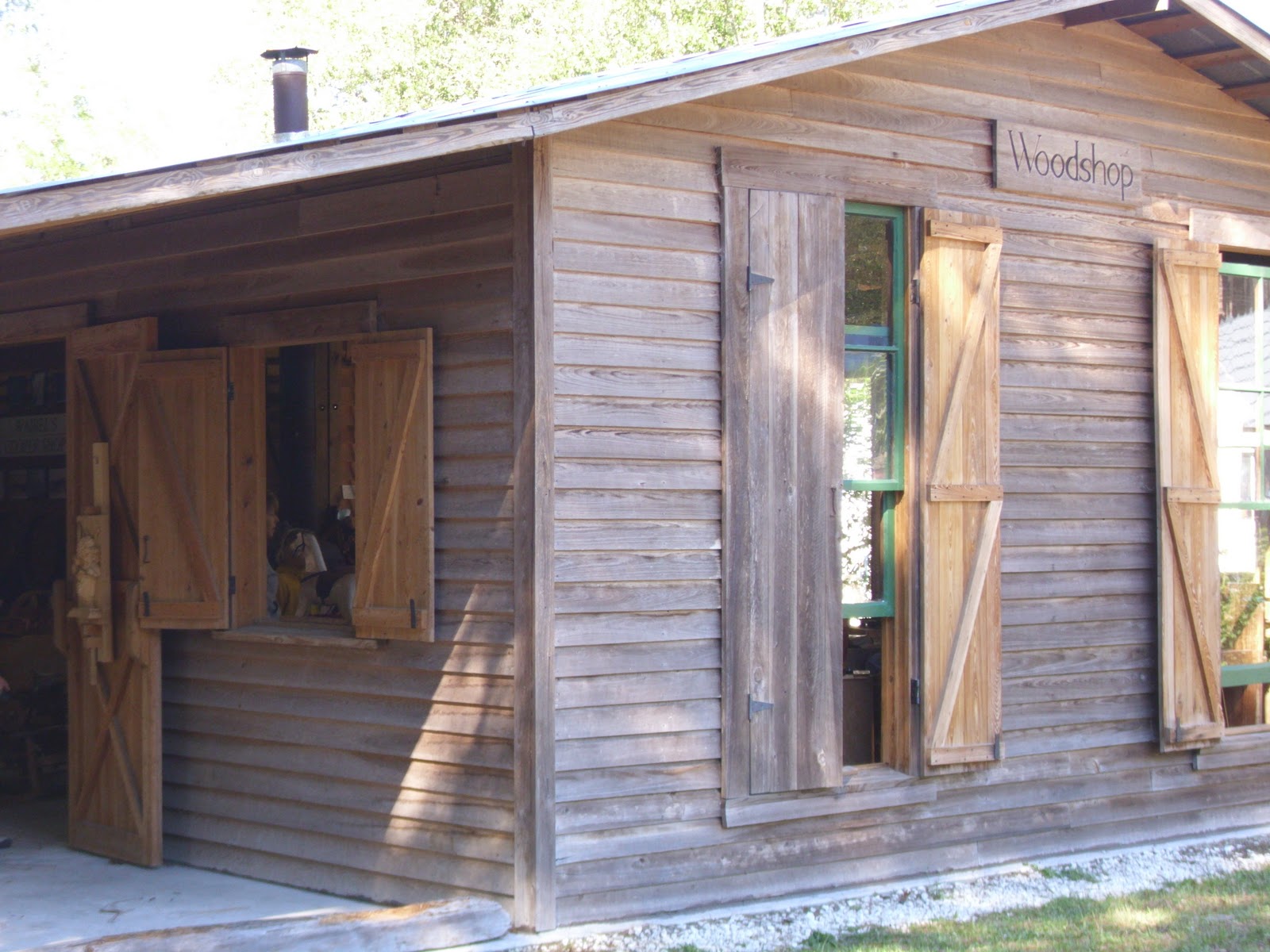 Our day went on like this. We followed the path through the village and stopped to learn a thing or two when given the chance. Olivia got to make a cedar shingle: